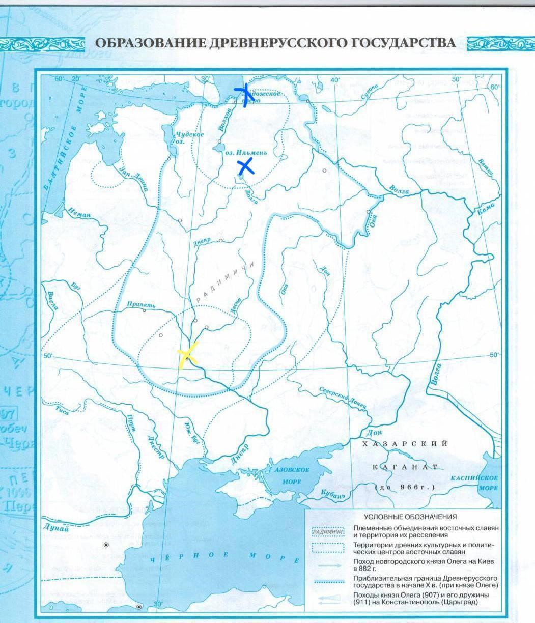 2 Отметьте на карте столицу Древней Руси при князе Олеге.