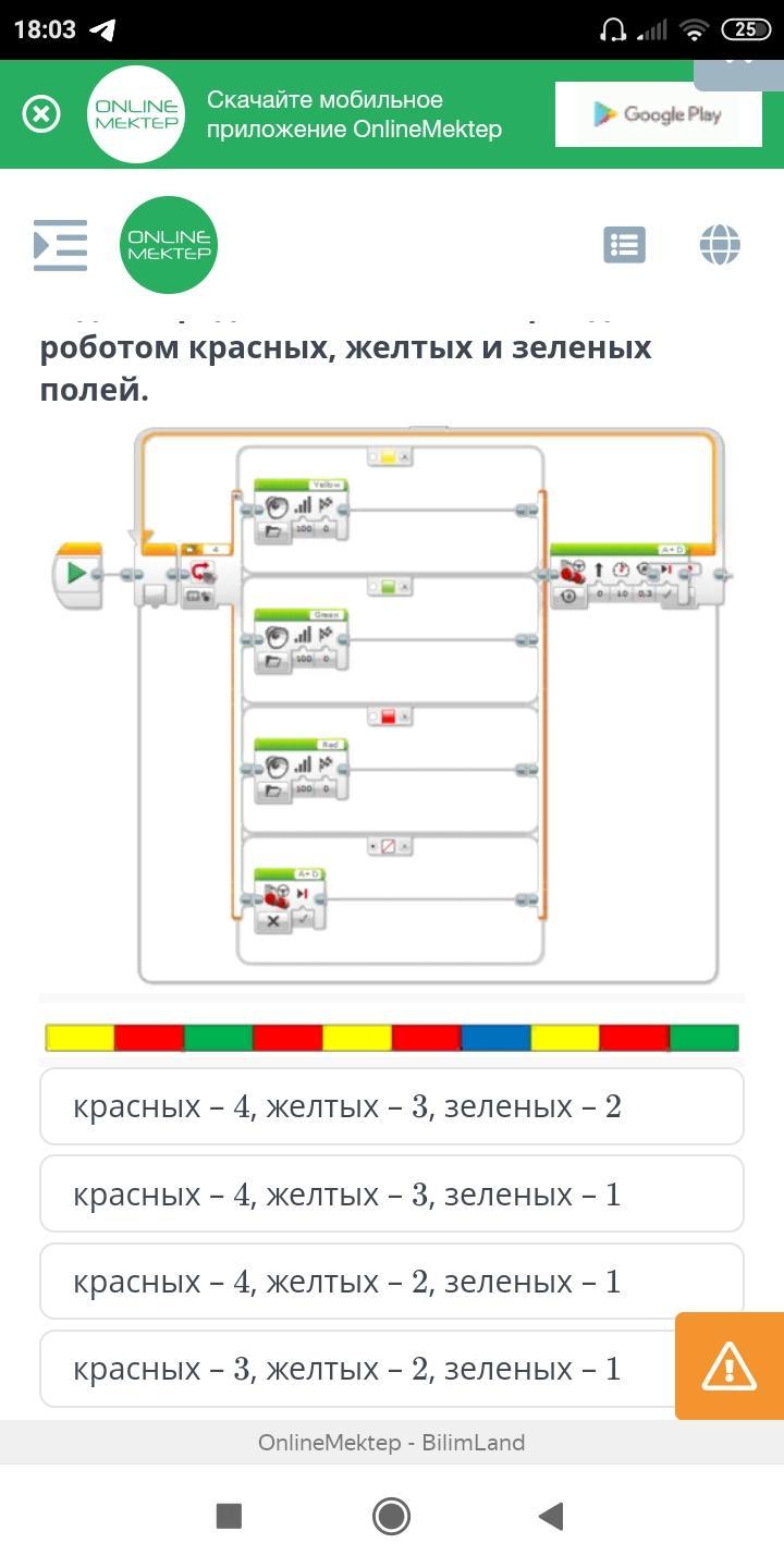 изучи предложенные поля, программный код и определи количество пройденных роботом