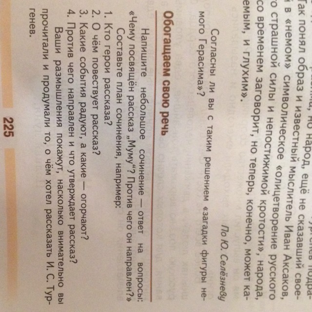 Главный герой рассказа Герасим. Рассказ повествует о искренней дружбе между собакой и человеком, которая заканчивается печальным образом. В этом рассказе меня обрадовало, что у Герасима появился друг, он больше не был одинок, а есть событие которые вызывали печаль и грусть, например, то что Герасиму потом пришлось по повелению барыни утопить Муму.