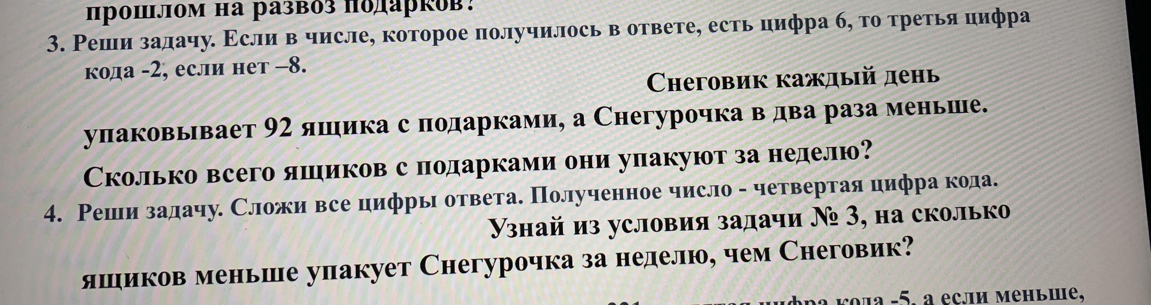 Если Снеговик упаковывает каждый день 92 ящика , то Снегурочка упаковывает в два раза меньше : 92/2=46 ящиков в день