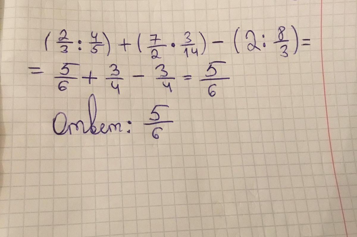 запишіть числа , протилежні та обернені до значення виразу (2/3 : 4/5)+(7/2*3/14)-(2:8/3)
