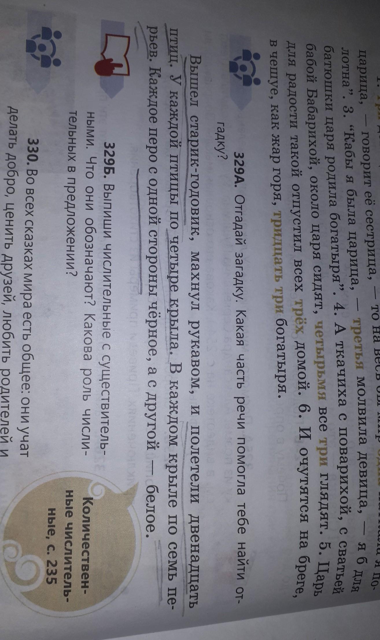 все что подчеркнуто - числительные с существительными. числительные указывают на количество тех или иных существительных.