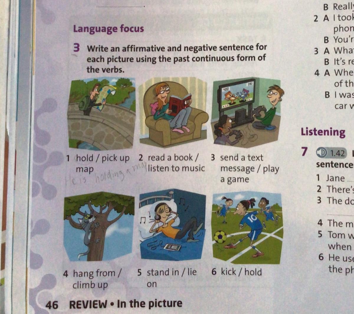 + с одним глаголом и - со вторым. She was reading a book. She wasn't listening to music.