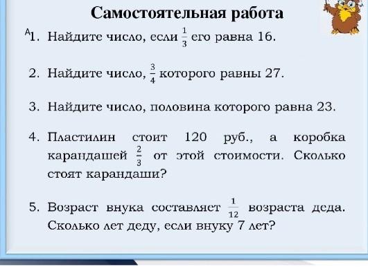 Чтобы найти число по его части, выраженной дробью, надо разделить эту часть на числитель и умножить на знаменатель дроби.