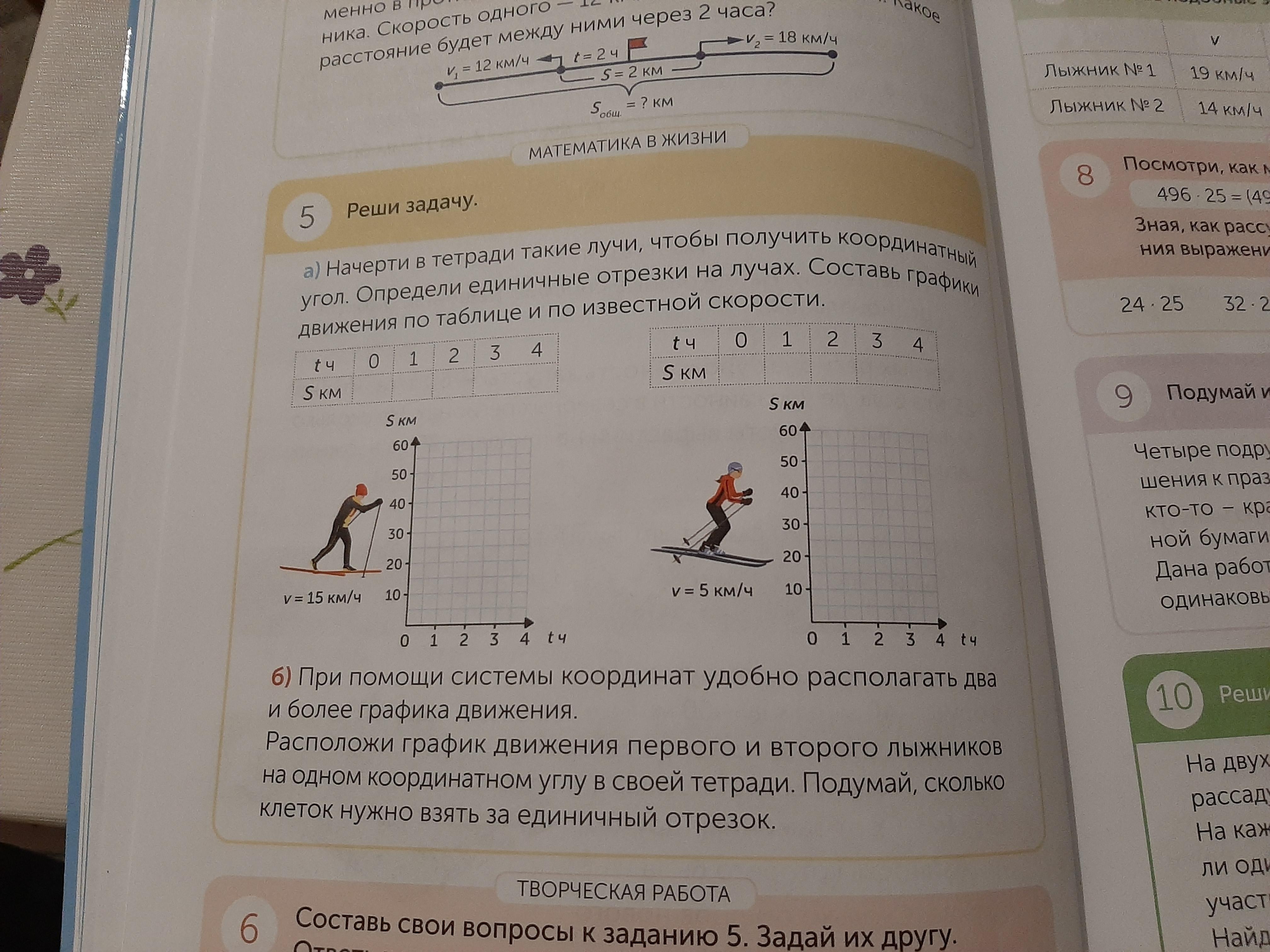 Ответ: 1 лыжник S = 0; S = 15 ; S=30 ;S =45 ; S=60.