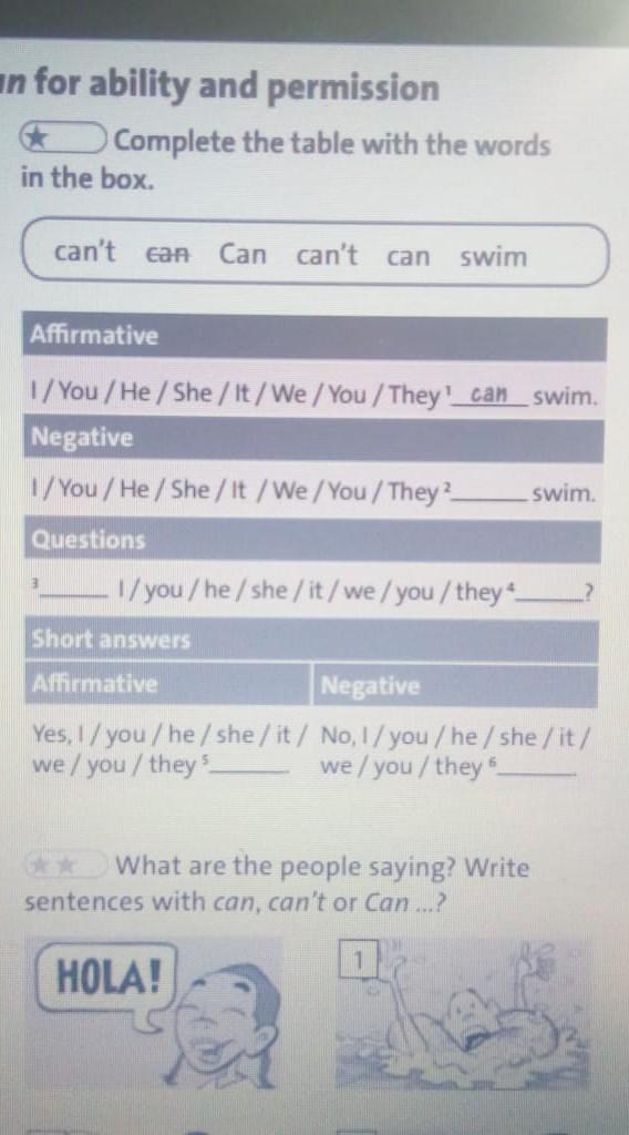 1. can 2. can't