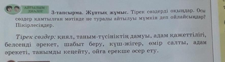 3-тапсырма. Жұптық жұмыс. Тірек сөздерді оқыңдар. Осы