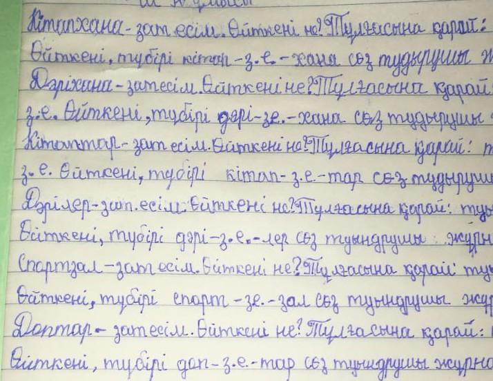 Қалауыңызша 2-3 сөз(зат есім) алып, төмендегі үлгіге сүйене отырып, талдау жұмыстарын жүргізіңіз.