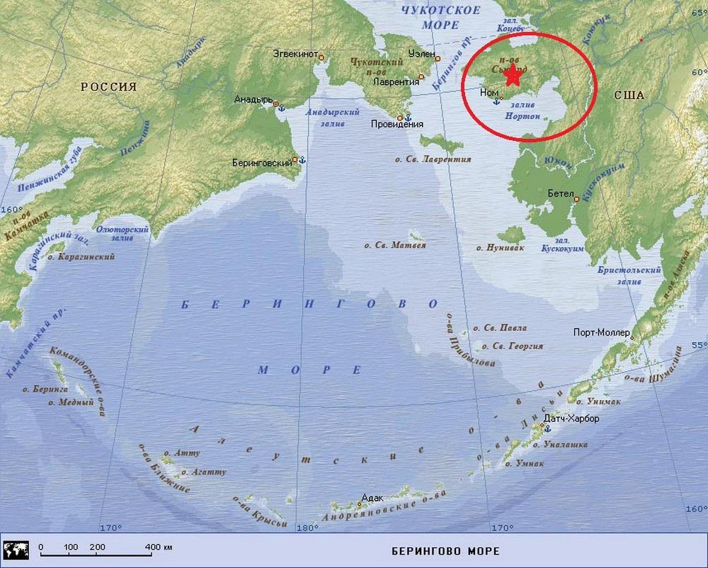 Координаты: 65°30'с.ш. 165°40' з.д. принадлежат к части света Америка.