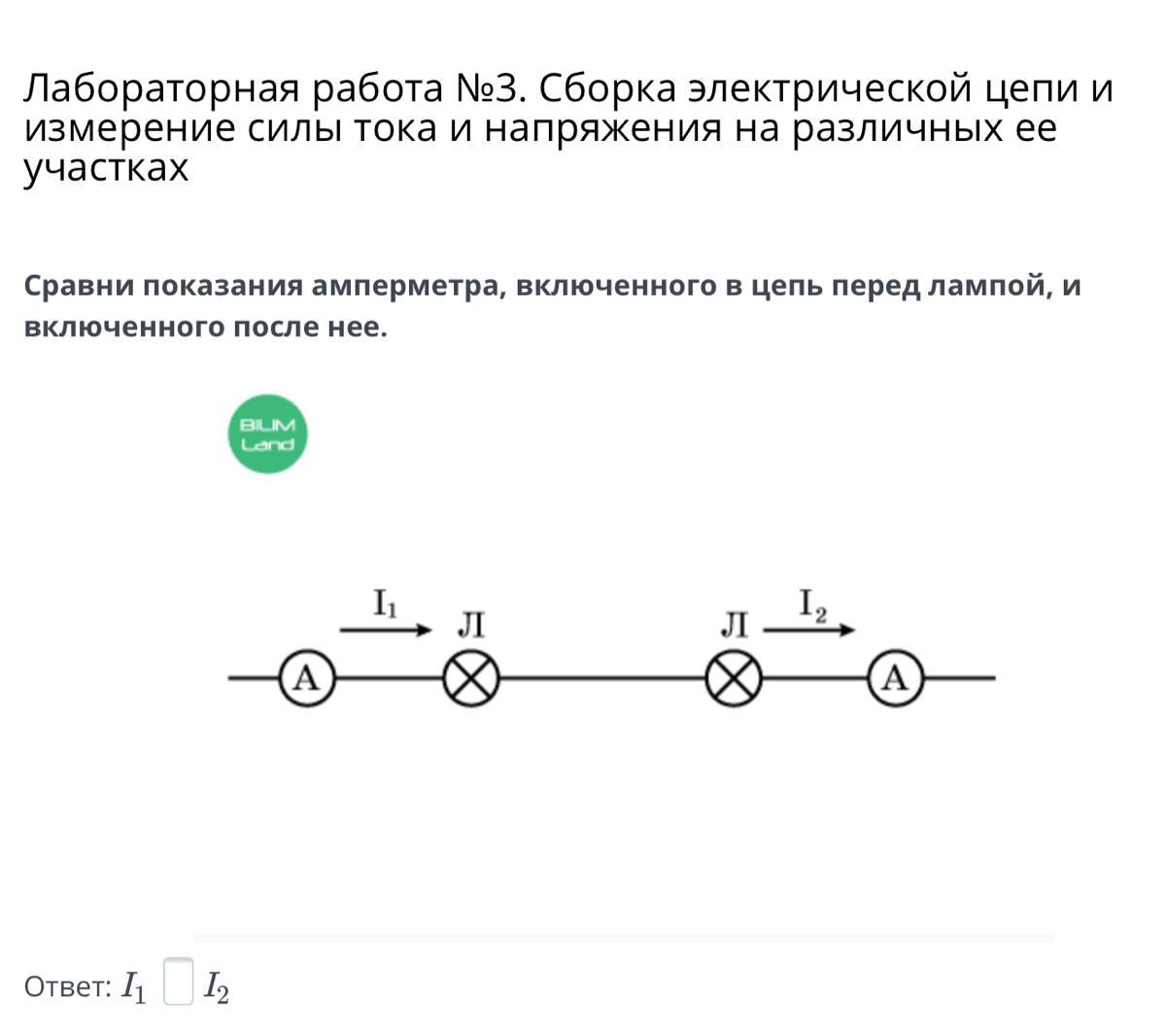Сравни Показания амперметра включённого в цепи перед лампой включённого после него(срочно)