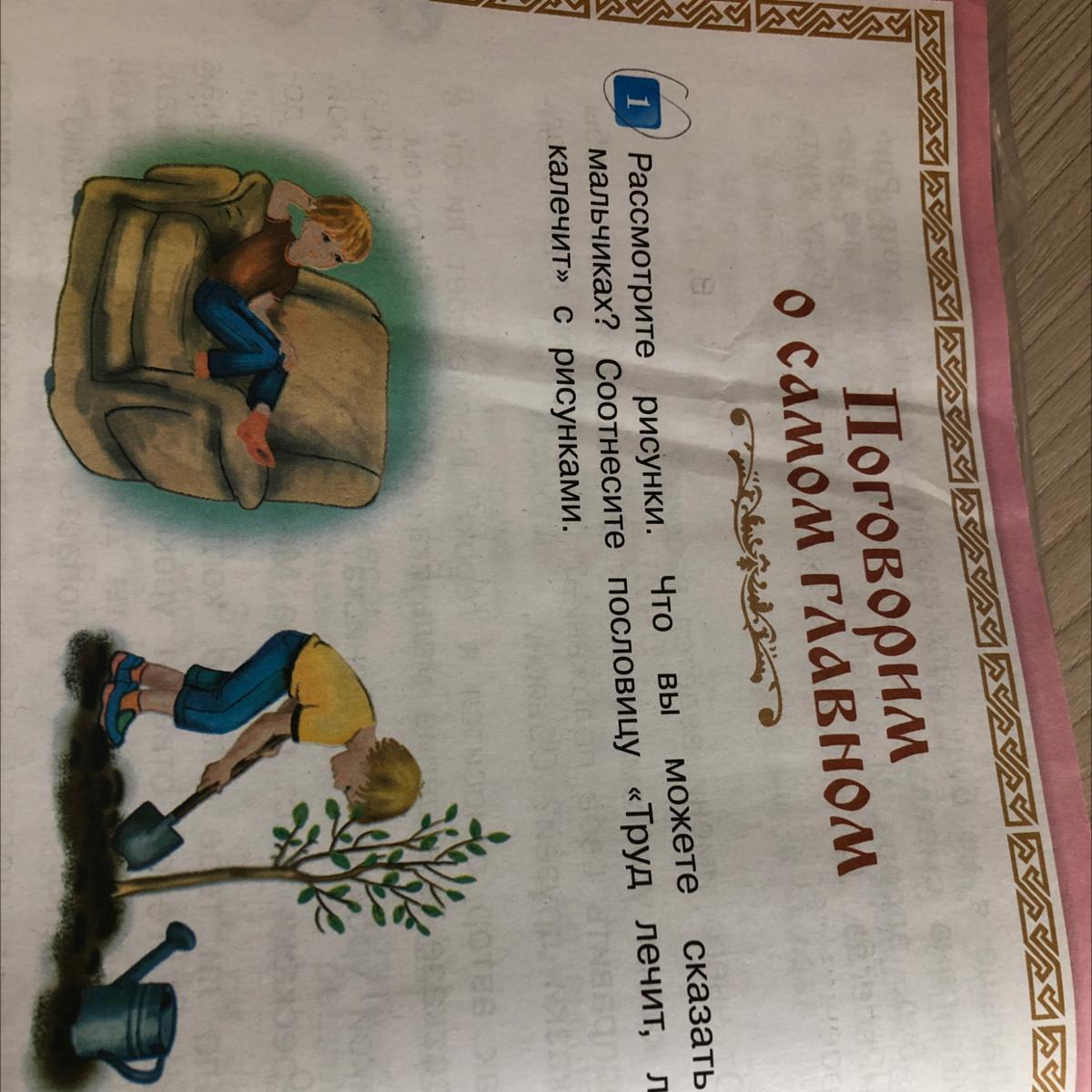 Объяснение: Труд лечит того что с праваон молодец что помогает саженцу а слева сидит лентяй который себя этим калечит