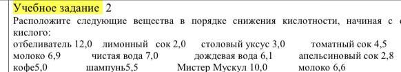 молоко 6,9 чистая вода 7,0 дождевая вода 6,1