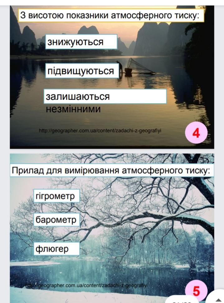 1. в екваторіальних і помірних 2. низьким 3. 770 вважається нормальним тиском, а 770 і 780 уже є підвищеним 4.зниєеним 750, 670. 5. знижуються 6. барометр