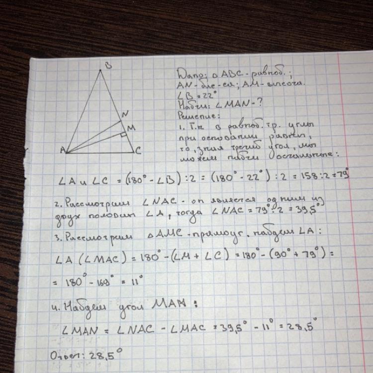 ∠MAN =28,5°