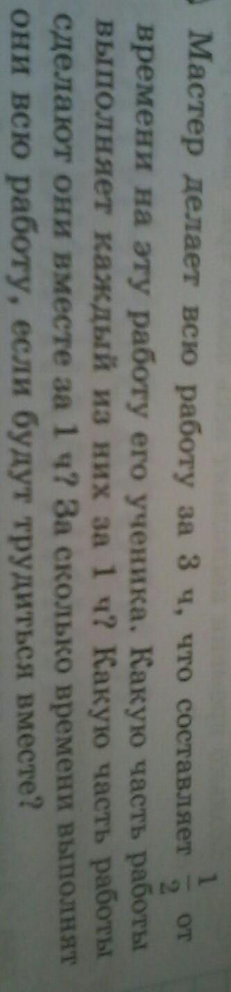 Мастер выполняет всю работу за 3 часа, что составляет 1/2 времени ученика.