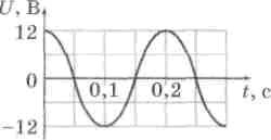 Рамка равномерно вращается в однородном магнитном поле. По графику зависимости напряжения на рамке от времени определите частоту вращения.