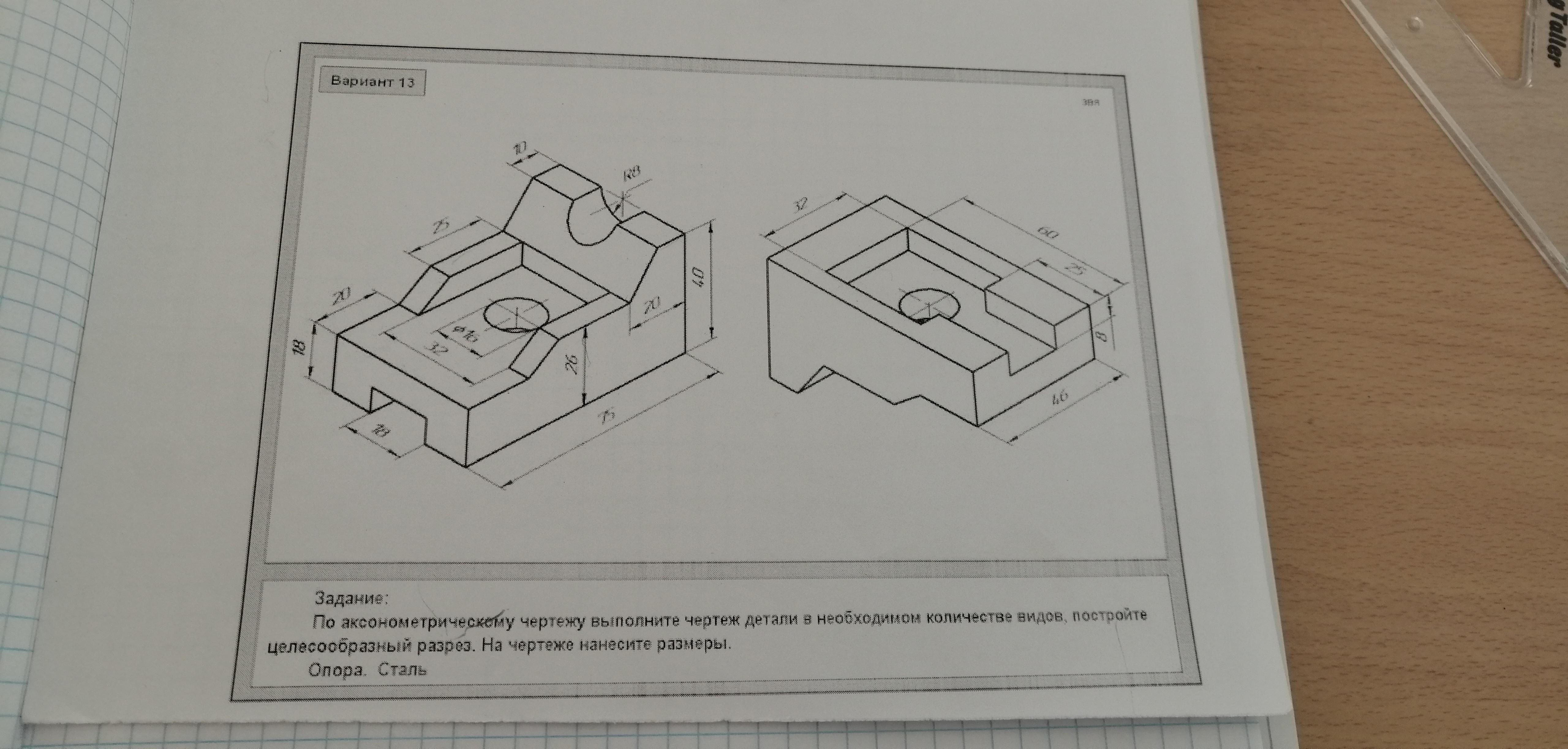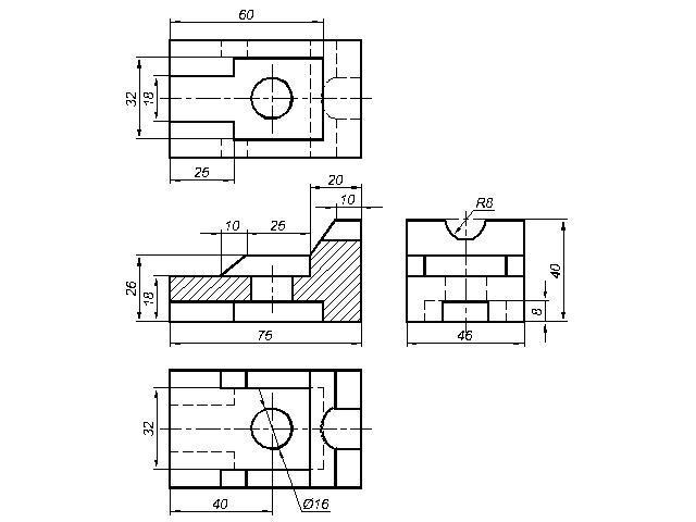 Над видом спереди (фронтальным разрезом) расположен вид снизу.