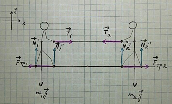 Команда 7класників буде змагатися з10класниками у перетягуванні канату на льоду. Відомо, що середня маса 7класника 50кг, а 10класника 70кг. Взуття 10класників має коефіцієнт тертя об лід 0,02. З яким коефіцієнтом тертя мають знайти взуття 7класники, щоб перемогти?