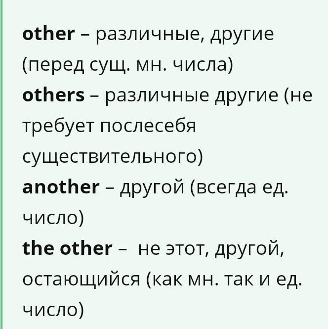 V. Выберите правильный вариант (other, another, the other).