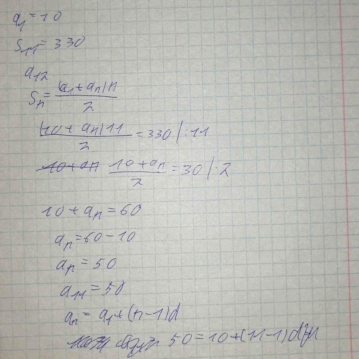 В арифметической прогрессии а1= 10, S11 = 330. Найдите а12.