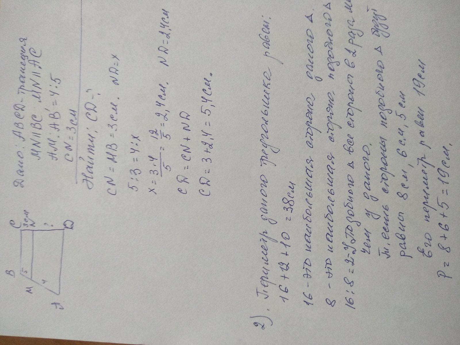 1)CD=5.4 см; 2) Р=19 см.