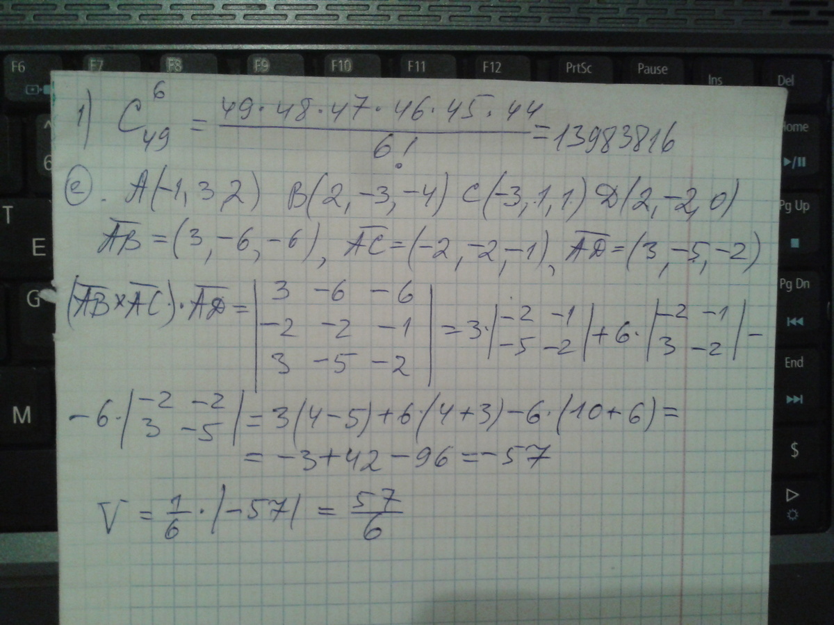 2..найдите обьем пирамиды с вершинами А(-1;3;2),В(2;-3;-4),С(-3;1;1),Д(2;-2;0)