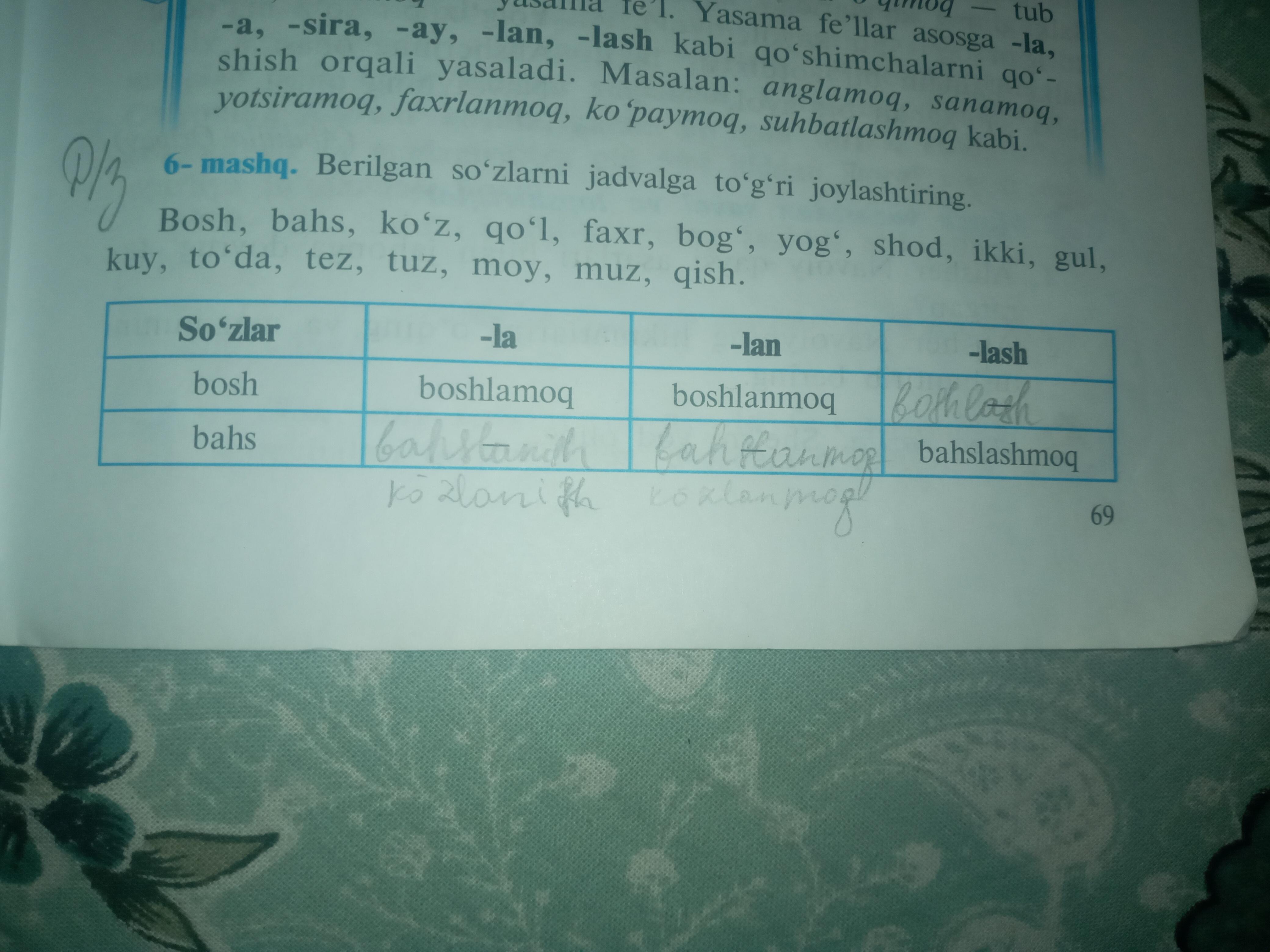bog' bog'lamoq bog'lanmoq bog'lashmoq