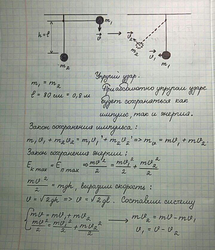 второй шарик после центрального абсолютно упругого удара? а абсолютно неупругого удара?