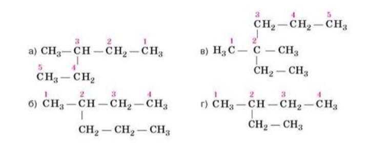 а) гексан б) гексан в) пропан г) 2-метилбутан