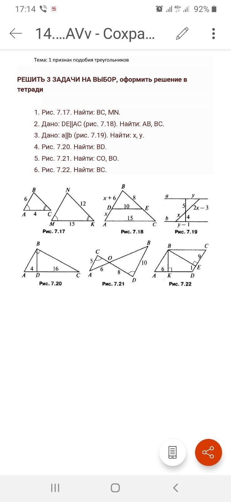 1) По двум углам (см. рис 7. 17) треугольники подобны! Следовательно: