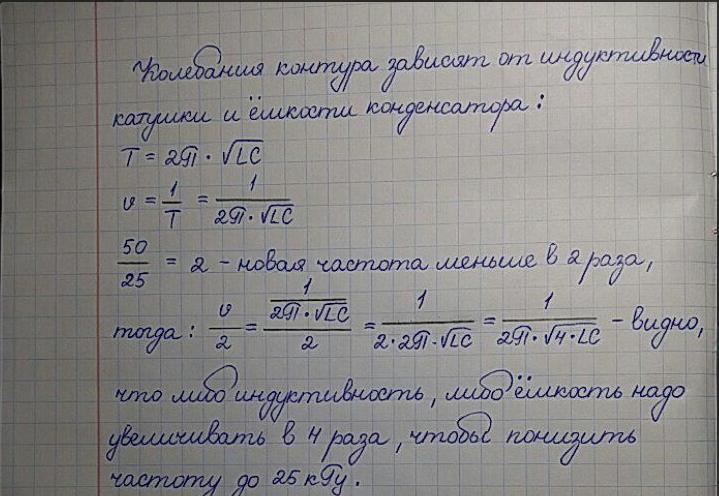 У генераторі на транзисторі виникають електромагнітні коливання частотою 50 кГц. Що потрібно змінити, щоб частота коливань зменшилася до 25 кГц