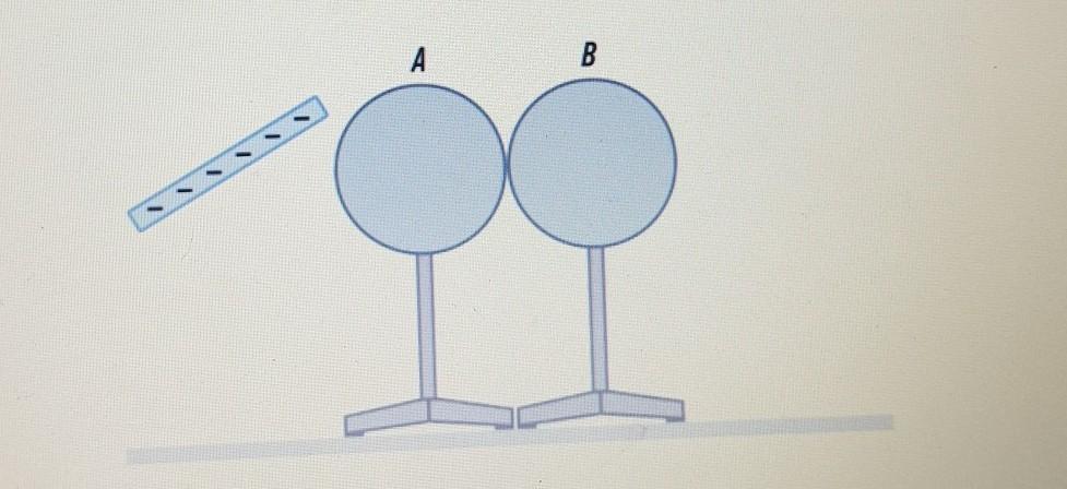 Два металлических шарика А и В, установленные на изоляционных стойках, сводятся вместе, и к ним приближается отрицательно заряженный стержень. Вовремя: