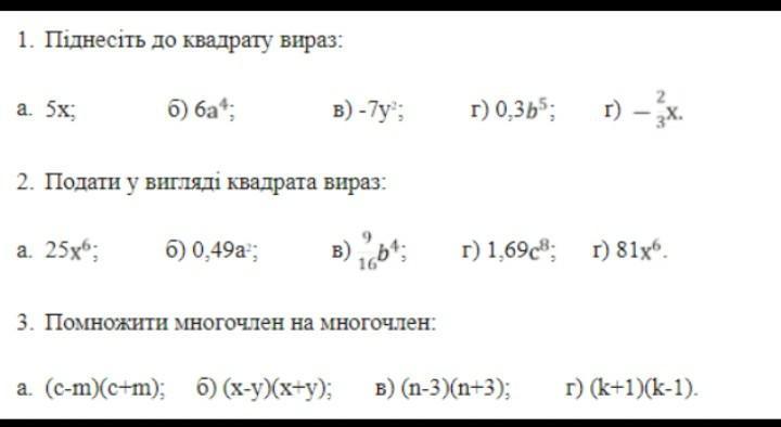 (5х)²=25х² (6а⁴)²=36а⁸ (-7у)²=49у² (0,3в⁵)²=0,09в¹⁰ (-2х/3)²=4х²/9