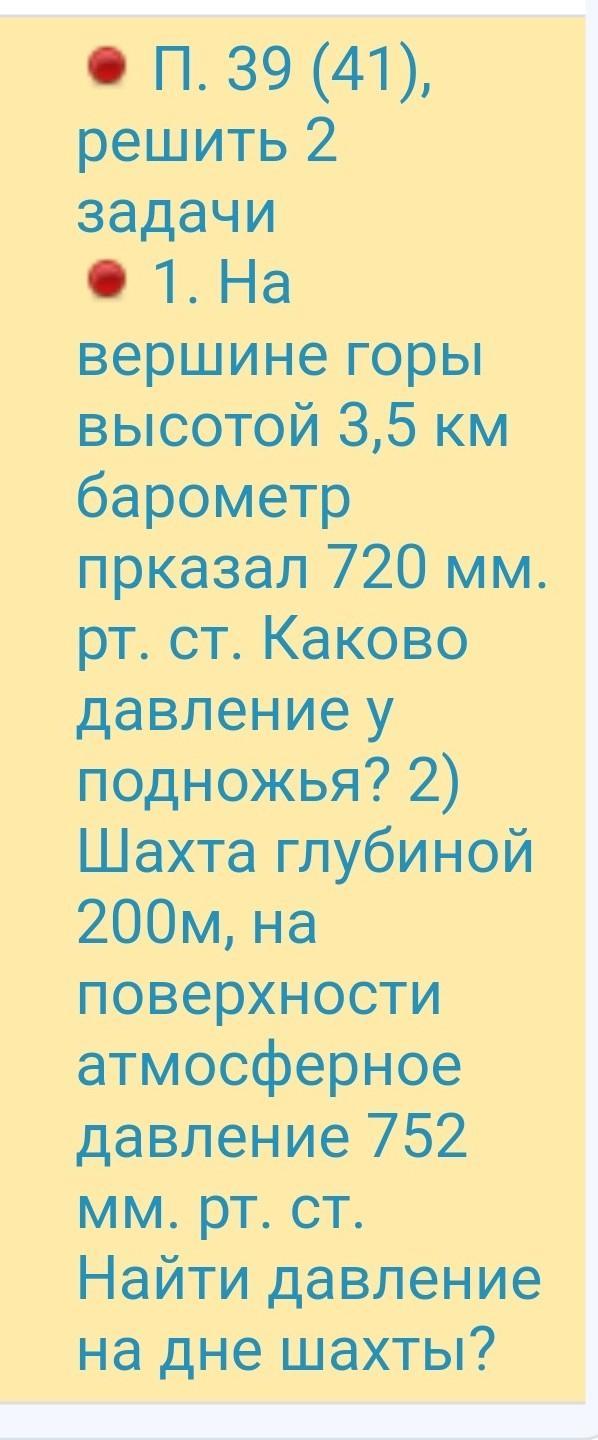 1. 3500 : 10,5 = 333. ( при подъёме на 10,5 метра атмосферное давление понижается на 1 мм рт ст). 2. 720 +333 = 1053 мм рт ст