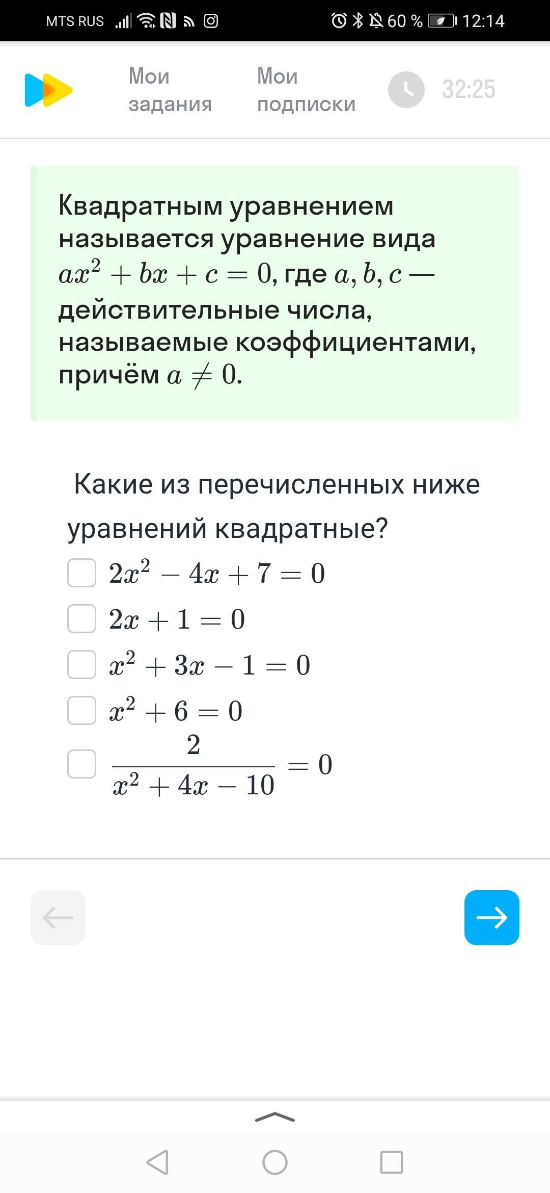 Какие из перечисленных ниже уравнений квадратные?