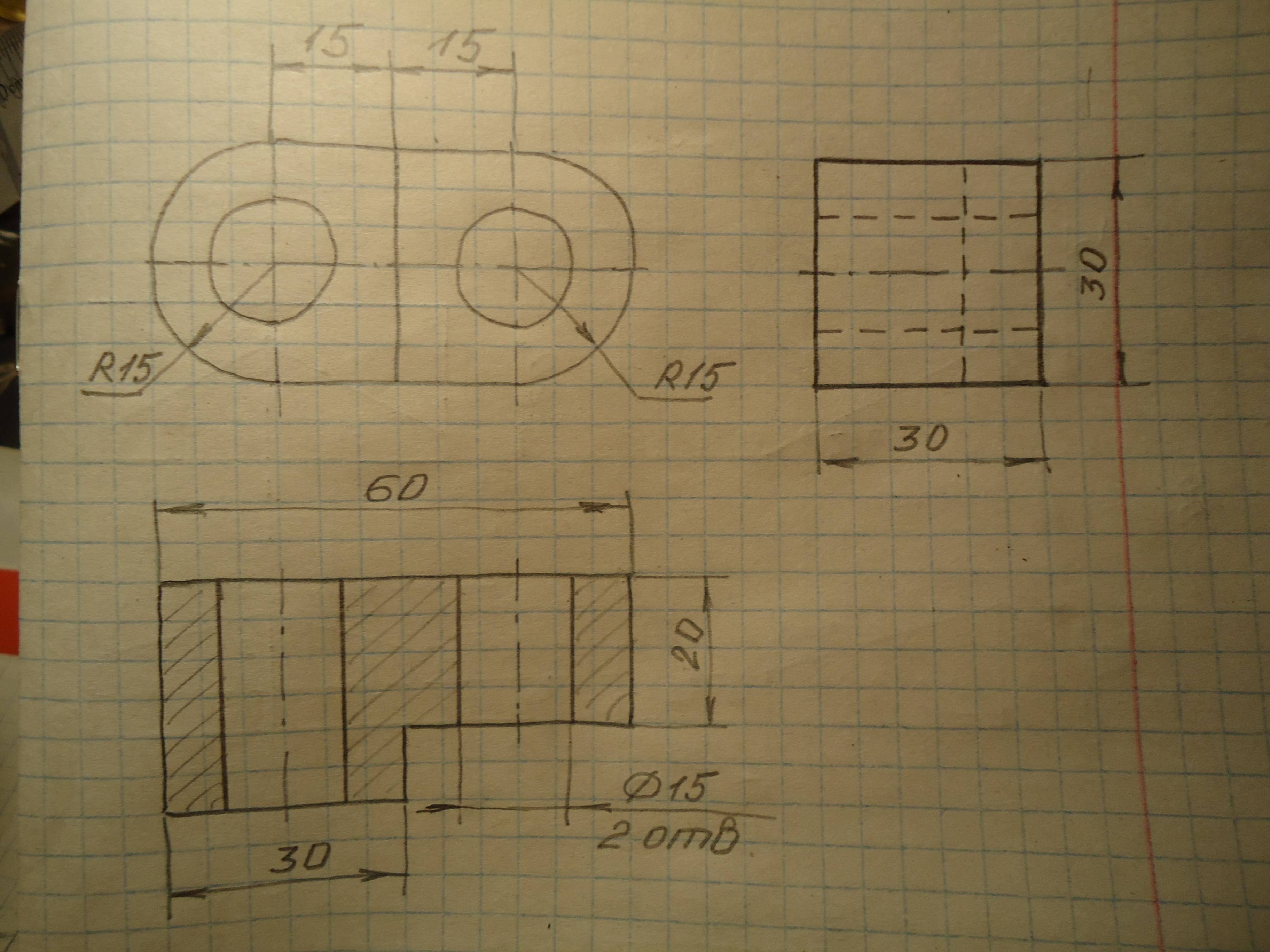 Чертёж детали из трёх видов с горизонтальным разрезом см. на фото.