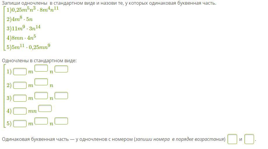 Одинаковая буквенная часть у одночленов с номером 1 и 3