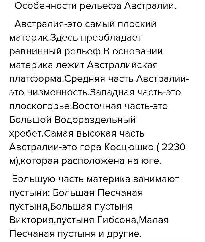 дайте краткую характеристику рельефа Австралии по плану:
