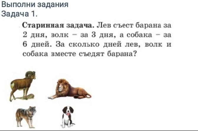 1/2+1/3+1/6 = 3/6+2/6+1/6 = 6/6 = 1 барана съедят за 1 день.