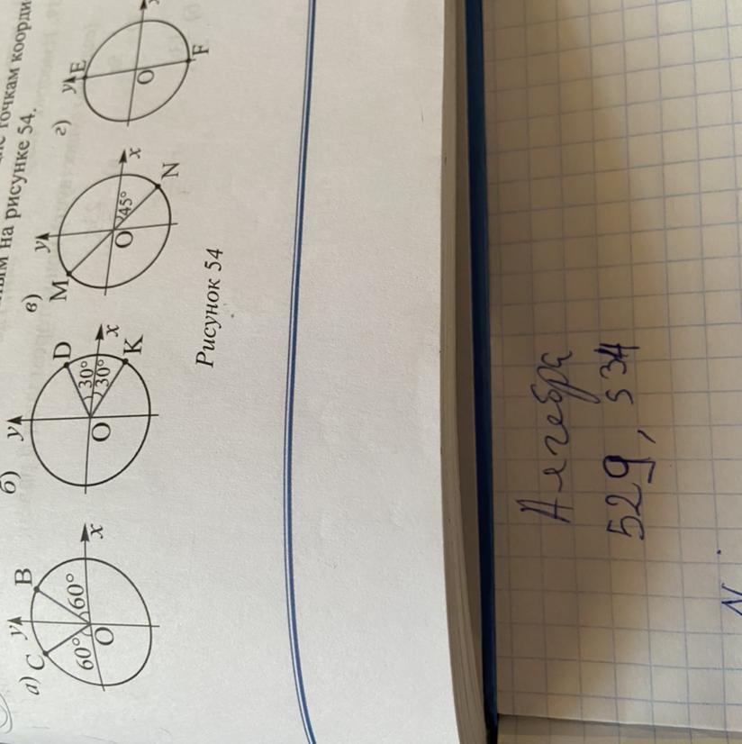 534. Укажите в радианах все углы, соответствующие точкам коорди-
