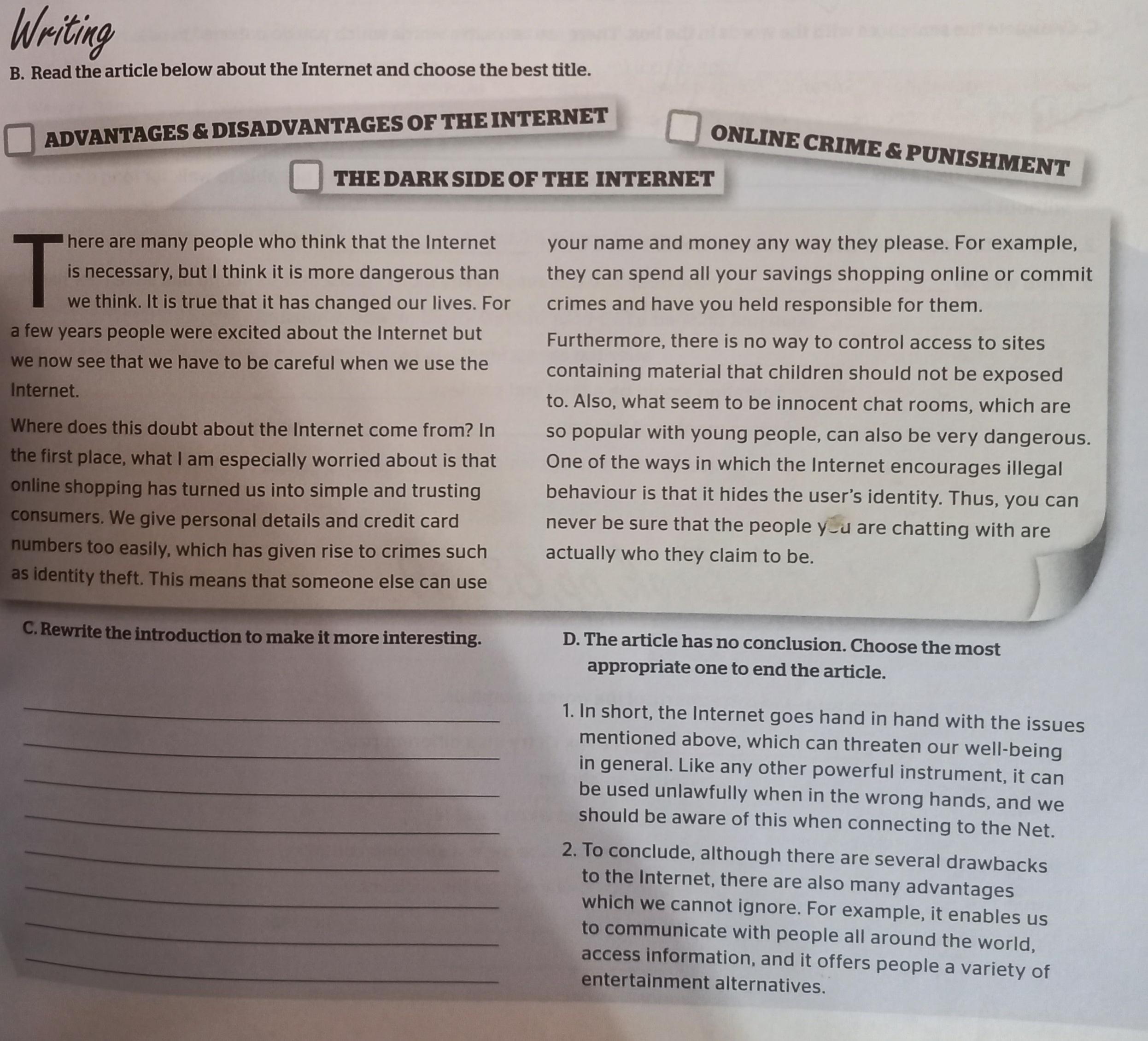 There's no doubt that the Internet changed our life enormously. Nowadays, everyone is well aware of a large number of its advantages in our life. But I've got some fears to share with the people who believe that the Internet has entered our daily lives with the best of intentions.