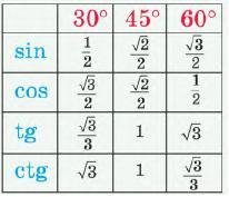 Надо знать значения тригонометрических функций основных углов (см. рисунок).