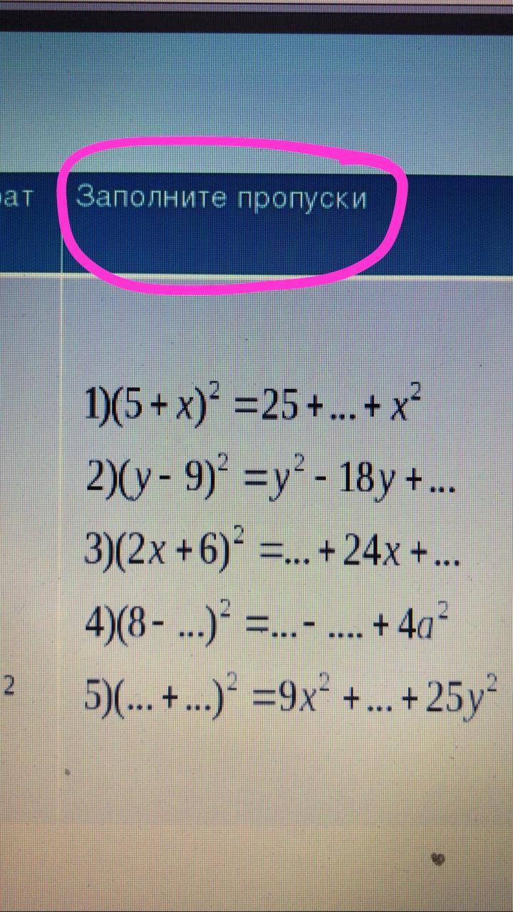 (a + b)^2 = a^2 + 2ab + b^2 (квадрат суммы)