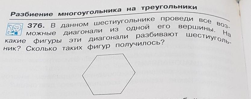 Диагонали из одной вершины разбили шестиугольник на 4 треугольника.