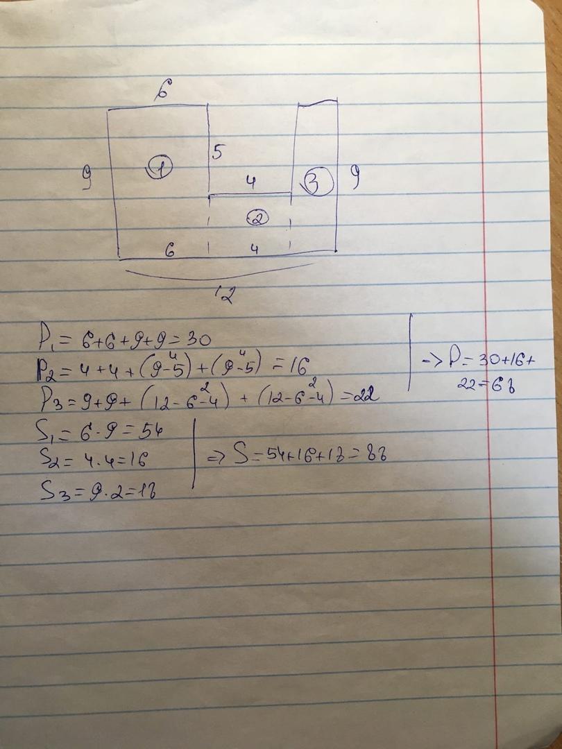 Делишь фигуру на 3 фигуры и ищешь уже у каждого площадь и периметр