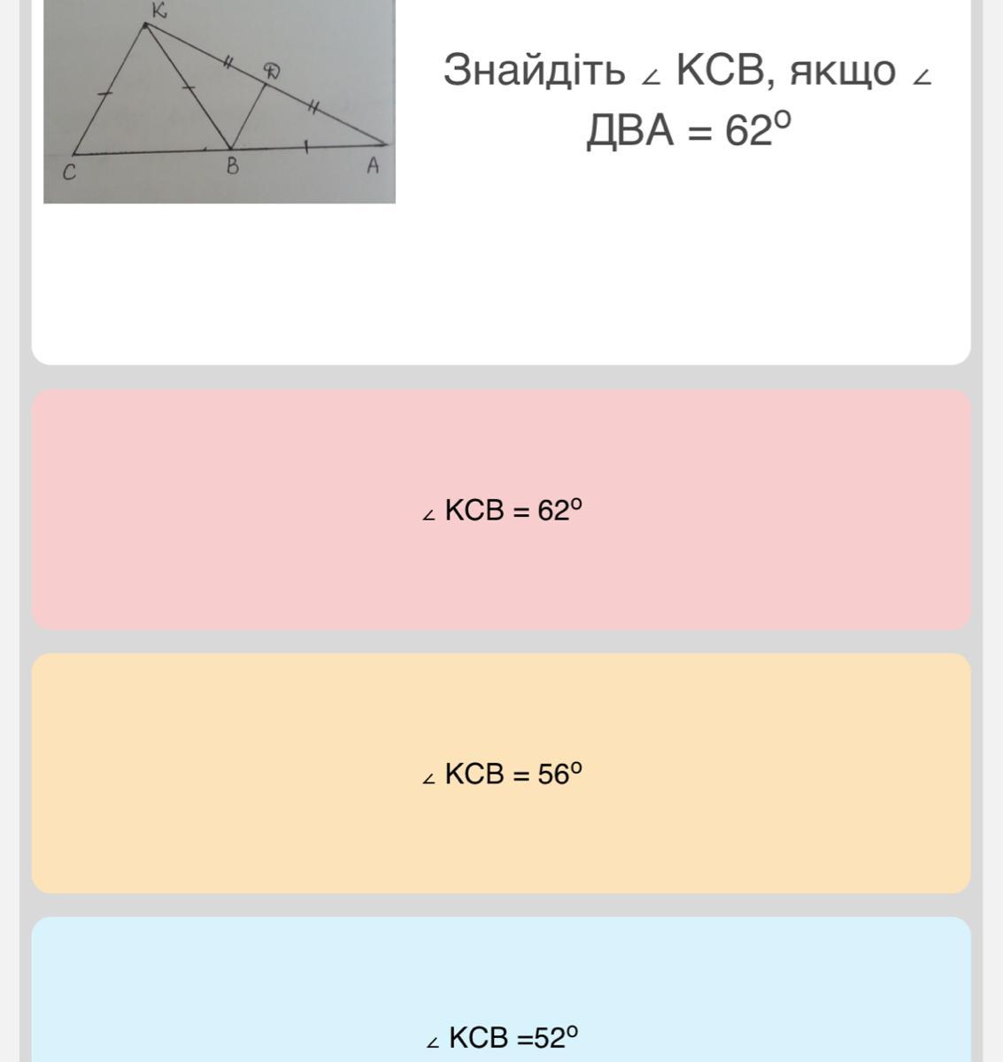 угол КСВ=56°, писала на русском перевести не смогу к сожалению