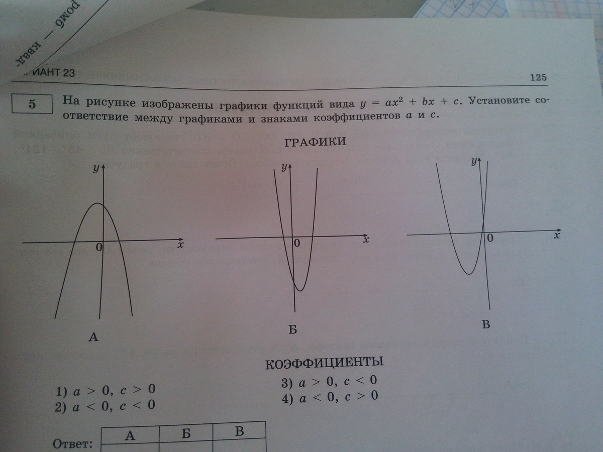 От знака коэф. с зависит знак ординаты (у) точки пересечения с осью Оу. Если c>0, то график пересекает ось Оу в положительной части, если c<0 - в отрицательной части.