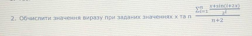 chislitel = chislitel + ((x + sin(i + 2 * x)) / pow(2, i));
