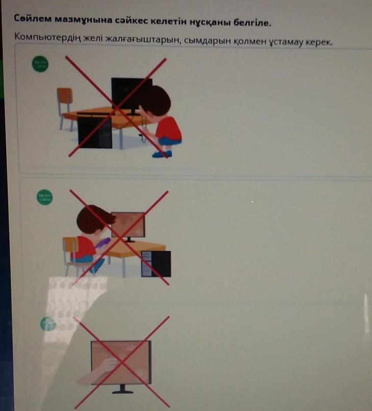 Компьютердің желі жалғағыштарын, сымдарын қолмен ұстамау керек.