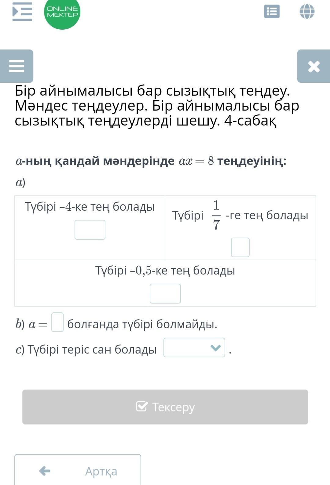 Быр айнымалысы бар сызықтық теңдеу. Мәндес теңдеулер.Быр айнымалысы бар сызықтық теңдеулерді шешу 4-сабақ..